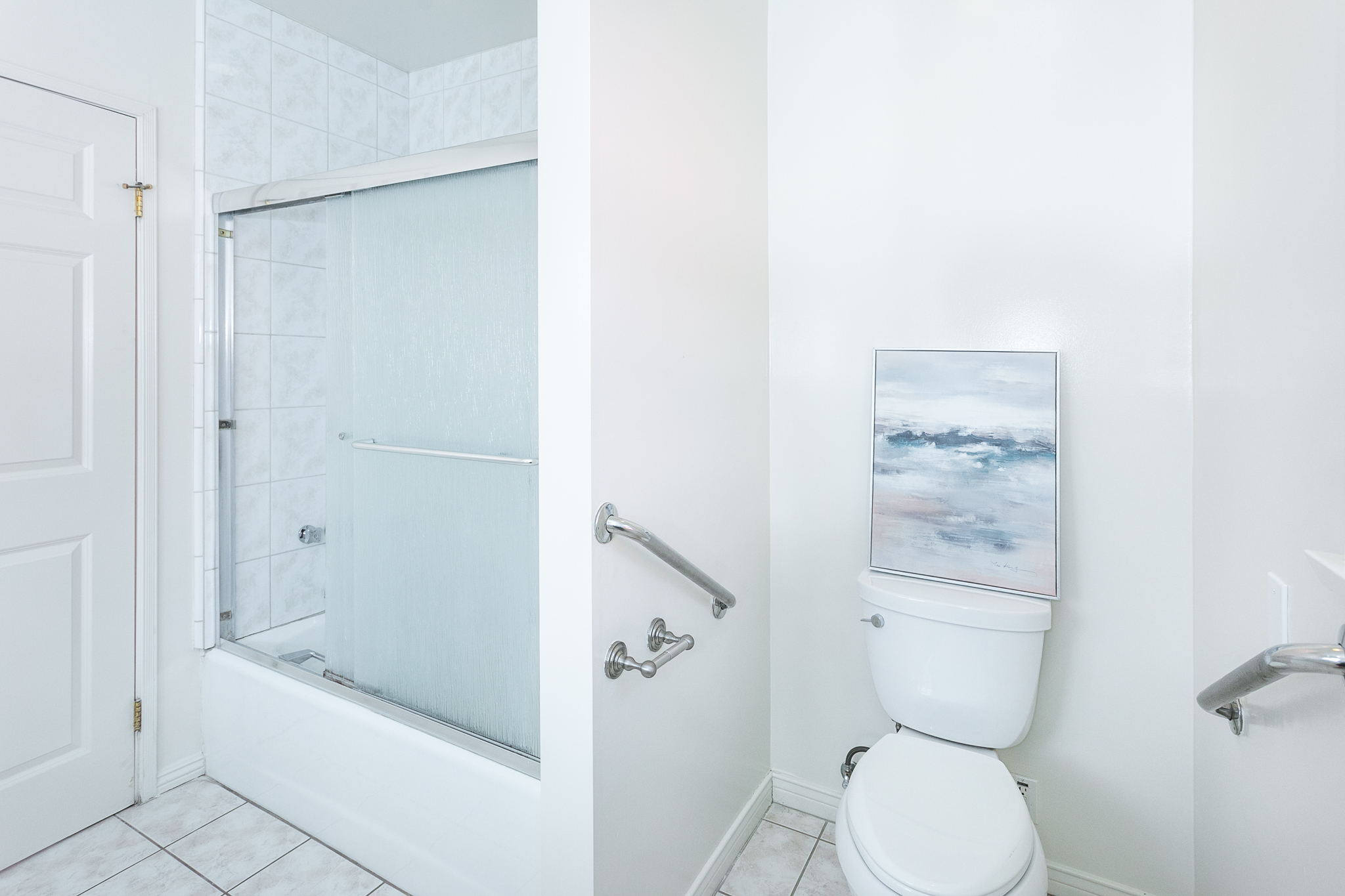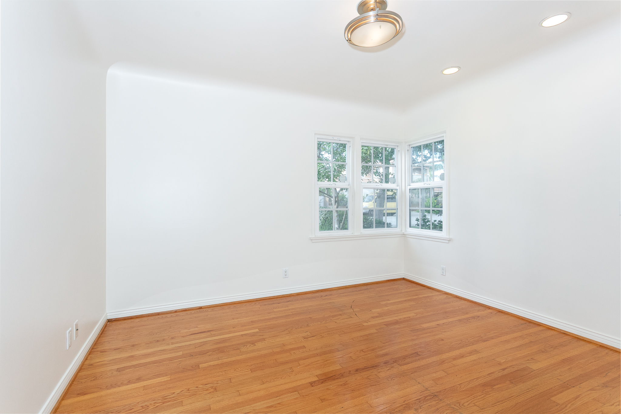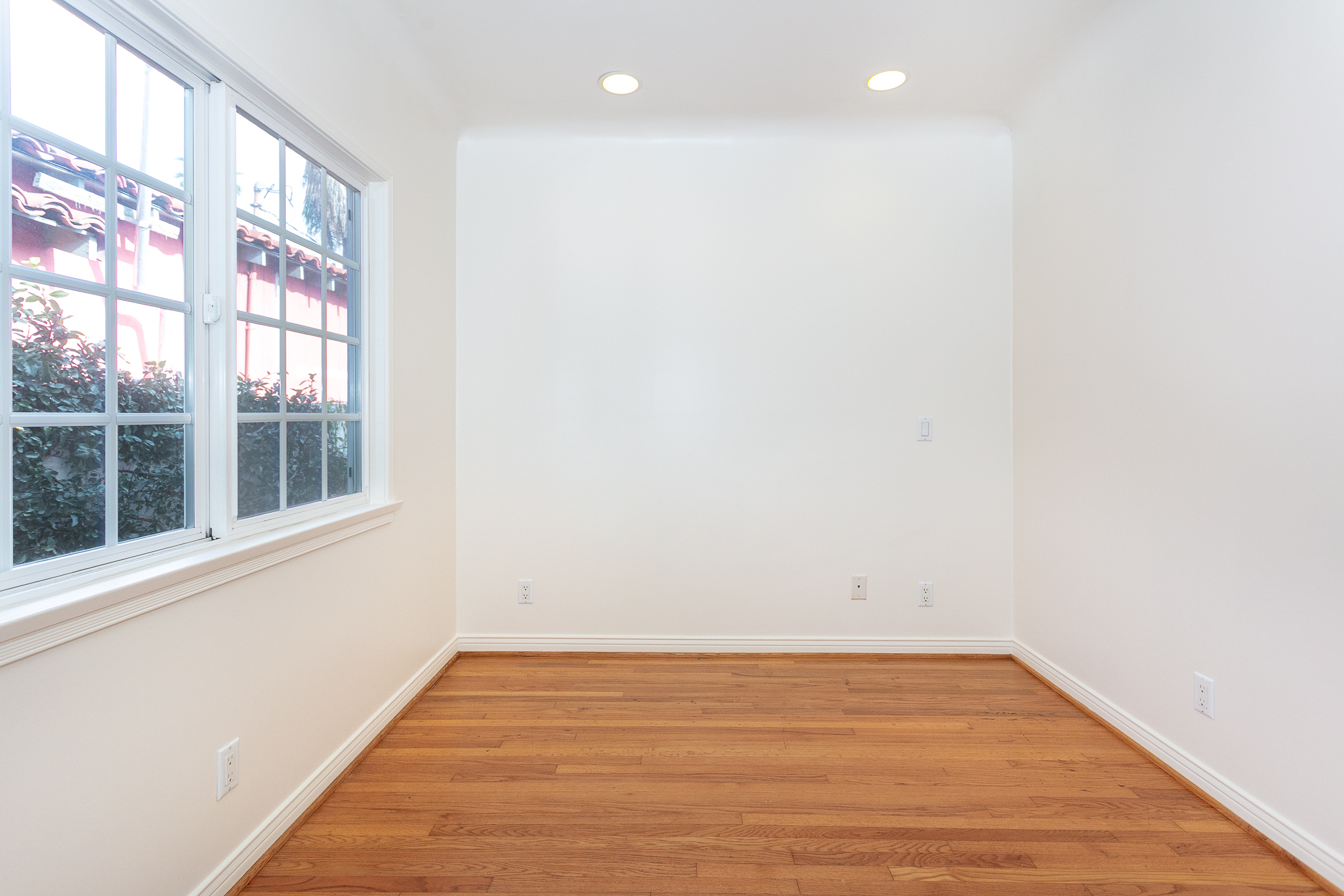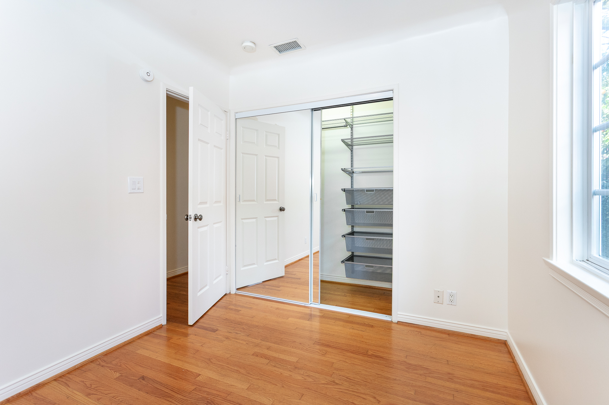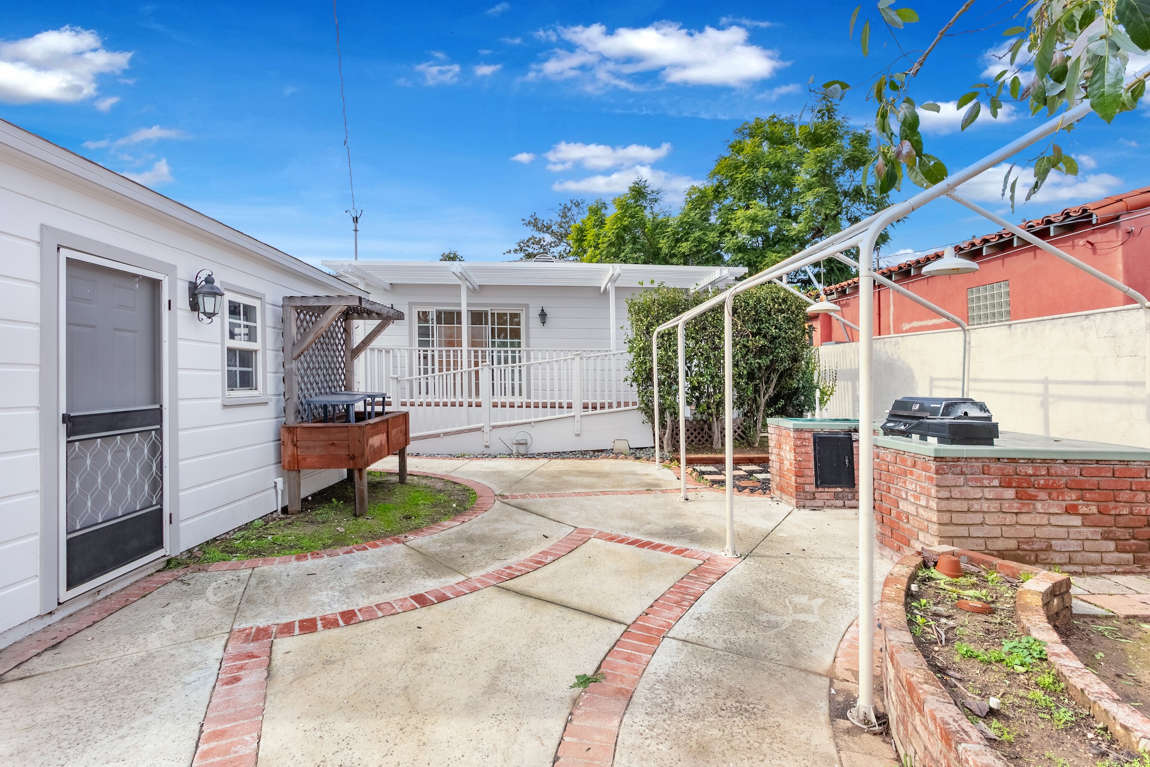 The home consists of three bedrooms and two bathrooms, with mirrored sliding closets featuring built-in shelvingfor added storage and organization. The spacious primary bedroom is filled with natural light and provides direct accessto a private patio, creating an inviting indoor-outdoor retreat.